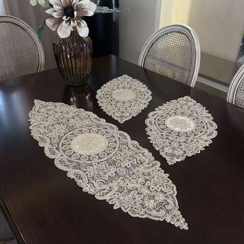 ست رومیزی 3 تکه مدل قیطان طرح گلبرگ